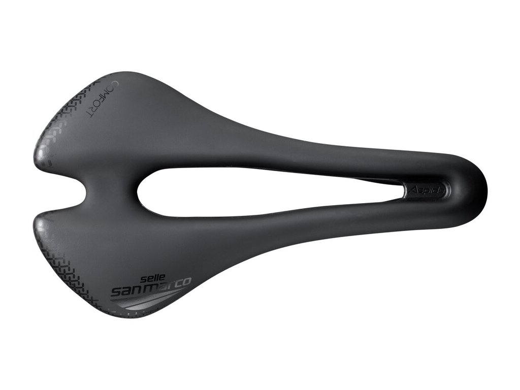 Selle San Marco ASPIDE SHORT- je moderný skráteným variantom ikonického modelu Aspide. V hierarchii modelov sa tak radí medzi klasické Aspide a univerzálny Allroad. Ponúka väčšiu dieru, stále relatívne plochý charakter sedla a úzku špičku. Vďaka širšiemu otvoru a novo tvarovanej zadnej časti ponúkne viac pohodlia. Sedlo je tak vhodné pre ľudí s užšou panvicou, skôr podsadenou.COMFORT Dynamic- (úroveň Dynamic, dodatočné polstrovanie biopenou), Táto úprava pridáva k štandardnému sedlu väčšie pohodlie. V štúdiách vykonávaných na jazdcoch rôzneho zamerania a fyzickej zdatnosti sa ukazuje, že väčšia miera pohodlia (zvýšené polstrovanie) môže mať veľmi pozitívny vplyv v dvoch prípadoch. Tým prvým sú kratšie tréningy menej zdatných cyklistov, ktorí nie sú na sedlo zvyknutí (cca do dvoch hodín) a tým druhým je naopak ultramaratónske poňatie cyklistiky s výkonmi dlhými 6-8 hodín a viac. Pri štandardnom cyklistickom výkone zdatného jedinca (3-5 hodín v sedle) sa ukazuje ako výhodnejšia kvalitná vložka v nohaviciach v kombinácii so závodnejšie pojatým posltrovaním sedla. Toto prevedenie tiež častejšie volia ženy – najmä tie príležitostne jazdiace.