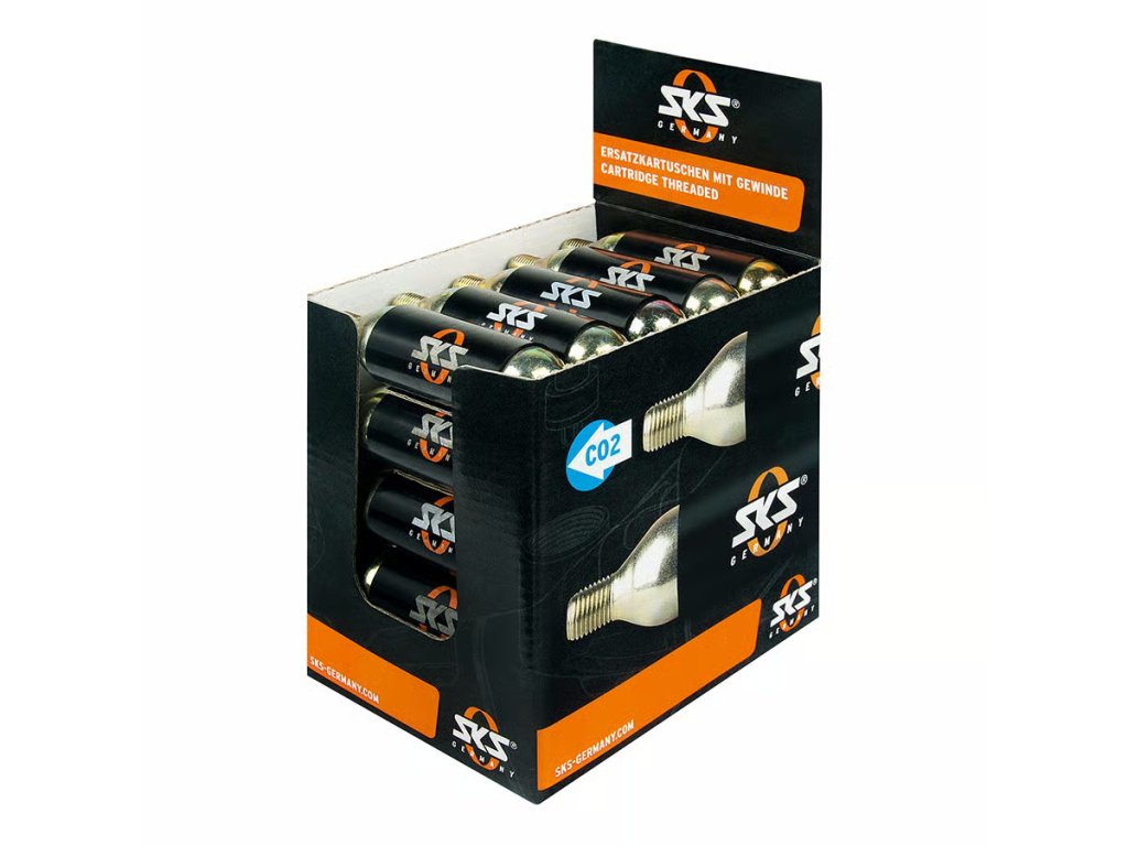 CO₂ bombičky SKS 16g so závitom sú navrhnuté pre rýchle a efektívne hustenie plášťov pomocou hustilky SKS Airchamp Pro. Balenie obsahuje 25 kusov bombičiek, každá z nich má hmotnosť 16 gramov a je vybavená závitom pre bezpečné a jednoduché pripojenie k pumpičke. Tento produkt je vhodný pre cestné aj horské bicykle, kde je potrebné rýchlo dosiahnuť požadovaný tlak.