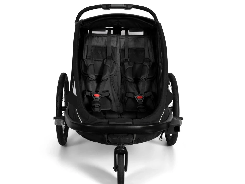 - Multifunkčné využitie: vozík za bicykel a možnosť rozšírenia o ďalšie sety napr. bežkársky či joggingový