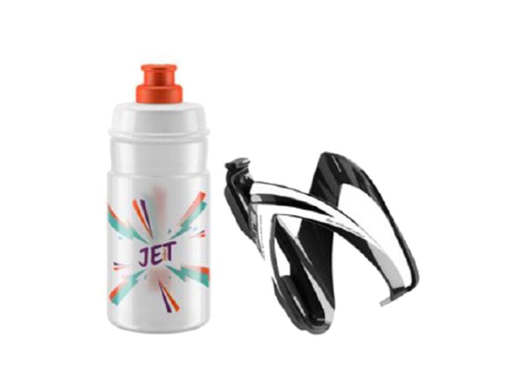 Sada košíka Ceo a fľaše Jet. Farebne zladené. Ideálne pre detské bicykle. Veľmi jednoduché použitie. Riešenie pre malé rámy teraz s novou fľašou.