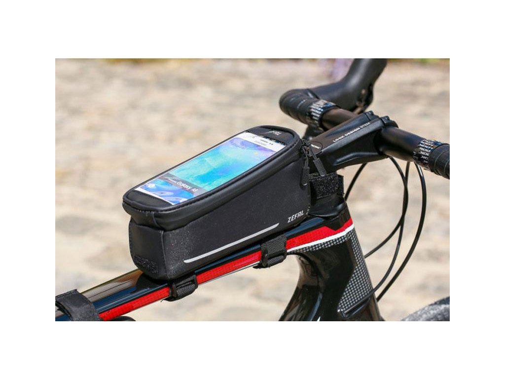- vodoodpudivý materiál 420D, reflexné logo, vodeodolný zips - súčasťou balenia je vodeodolná pláštenka - káblová priechodka pre slúchadlá - obsahuje extra dlhý remienok pre rôzne možnosti pripevnenia na bicykle so špeciálnymi tvarmi rámov - ideálny na prenášanie smartfónu a malých častí (súpravy na opravu, kazety s CO2, peniaze, kľúče atď.). - dvojitý remienok na suchý zips umožňuje ľahké pripevnenie na všetky typy rámov, a to aj tých najširších, bez rizika poškriabania. - dotykovú obrazovku smartfónu možno použiť kedykoľvek