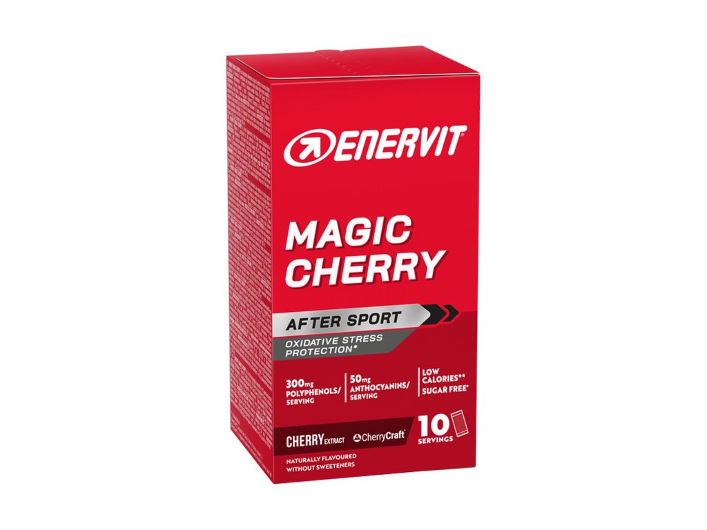 Enervit Magic Cherry je višňový extrakt, ktorý obsahuje vysoké množstvo (300 mg na dávku) polyfenolov a vitamín E s výraznými antioxidačnými účinkami. Tieto látky zohrávajú dôležitú úlohu pri podpore obranyschopnosti proti oxidačnému stresu a pomáhajú neutralizovať voľné radikály, ktoré vznikajú počas intenzívneho fyzického výkonu. Výrazne tak prispievajú k úplnému a efektívnemu zotaveniu po náročných vytrvalostných aktivitách. Ideálne pre tých, ktorí vedia, že kompletná regenerácia je kľúčom k maximálnemu výkonu. KEDY A AKO POUŽIŤ Užívajte 1–2 vrecúška denne. Obsah jedného vrecúška (9 g) rozpusťte v 200–500 ml neperlivej vody. Pre maximálny účinok užívajte ihneď po fyzickej aktivite. Pred dôležitým pretekom odporúčame užívať 1–2 vrecúška denne počas 5 dní pred výkonom. VÝŽIVOVÉ HODNOTY Priemerné výživové údaje 1 vrecúško (9 g) Extrakt z višní 2,4 g z toho polyfenoly 300 mg z toho antokyany 50 mg Vitamin E 3,6 mg (30) * *Referenčná hodnota příjmu v % Nízký obsah kalorií: