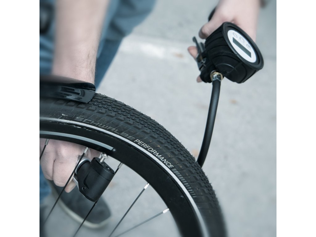Počas hustenia sedí pogumovaná rukoväť s kovovým jadrom pohodlne a pevne v ruke. MV EASY WORKSHOP je vhodná pre všetky typy ventilov – Presta, Schrader aj Dunlop.