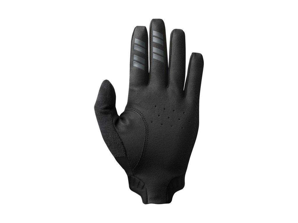 MTB celoprstové rukavice s priliehavým strihom a lepšou priľnavosťou a ovládateľnosťou. Dlaň vyrobená z jednovrstvovej syntetickej kože bez polstrovania vytvára väčší pocit jednoty s riaditkami pre lepší pocit z bicykla a väčšiu kontrolu. Silikónové prúžky na dlani pre extra priľnavosť. Laserom vyrezané otvory na dlani pre zvýšenú priedušnosť. Priedušná sieťovina na vrchnej strane vyrobená z elastického 72% recyklovaného polyamidu. Mäkká tkanina na palci na utieranie potu. Zvýšená ochrana ruky na vonkajšej bočnej strane. Materiál chrbát: 42% recyklovaný polyester, 18% polyester, 15% guma, 15% elastan, 10% polyamid Materiál dlaň: syntetická koža