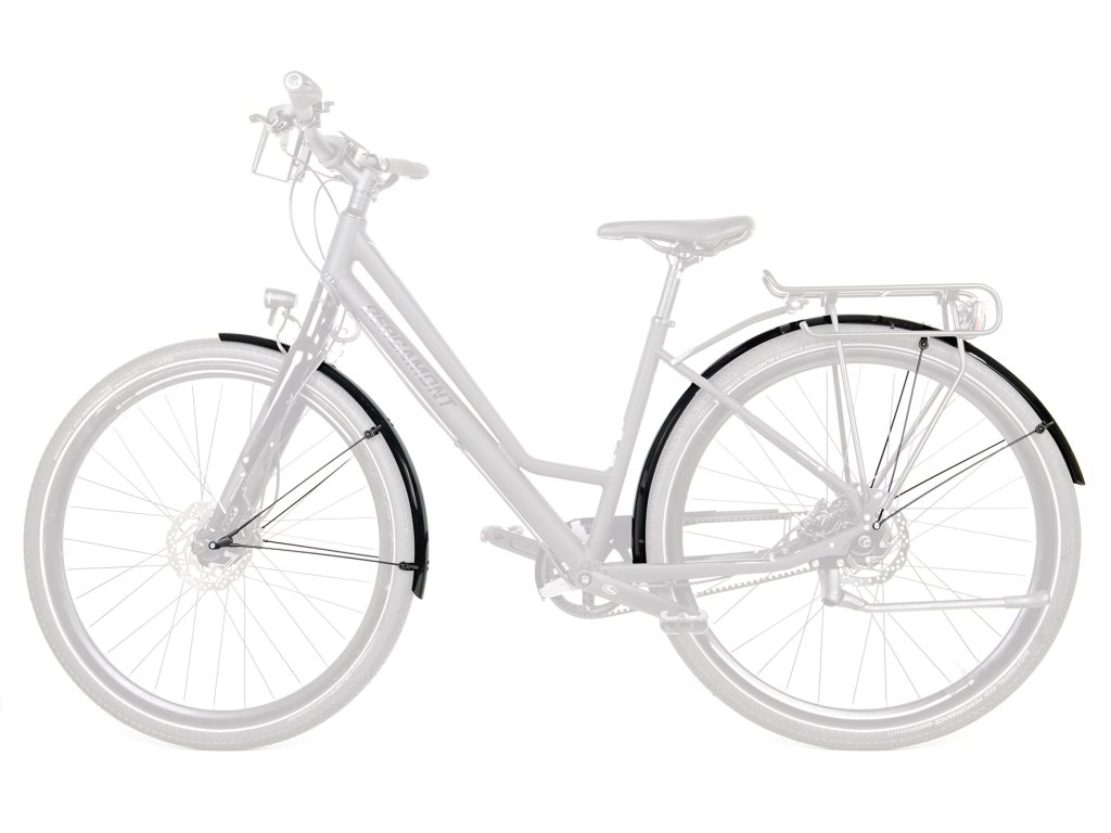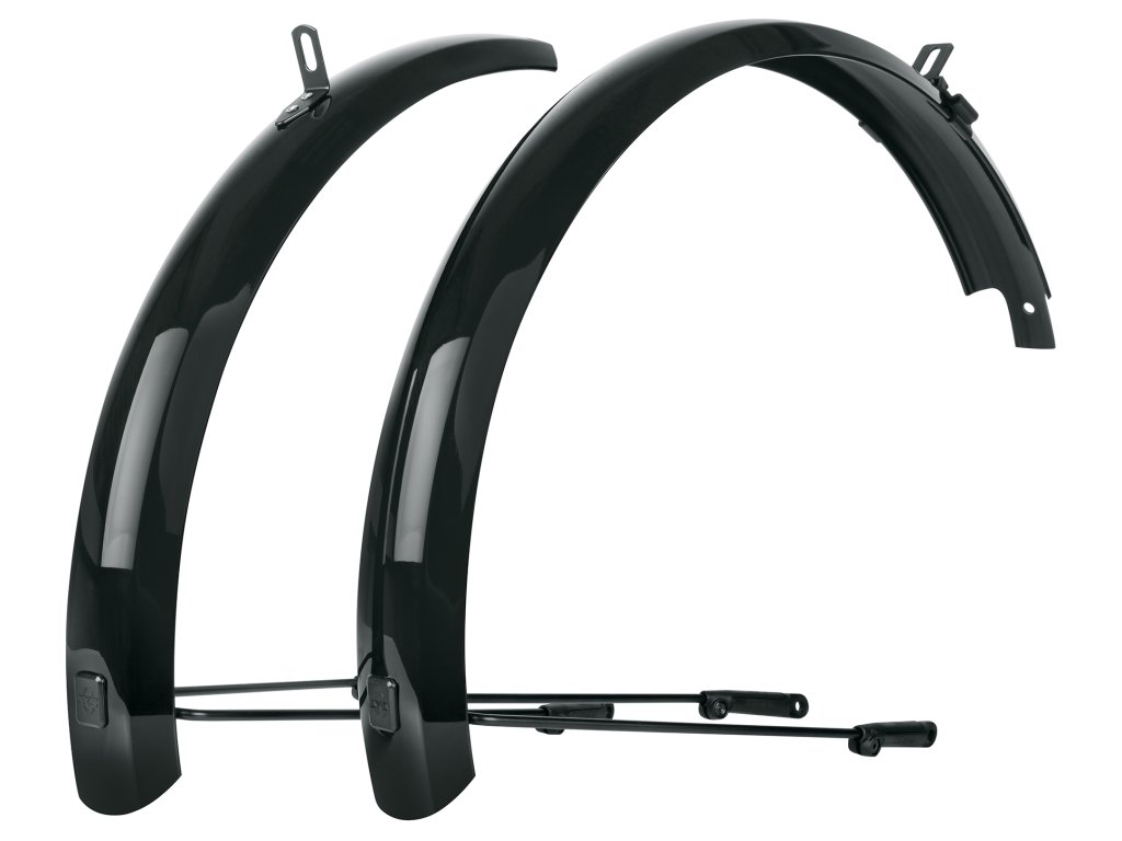 SKS Bluemels Basic je sada blatníkov vyrobená z robustnej sendvičovej konštrukcie v kombinácii hliník/plast. Jeho lesklý dizajn vie zaujať, spoľahlivo chráni pred nečistotami a striekajúcou vodou. Vďaka flexibilnej sendvičovej konštrukcii, v ktorej sú ultra jemné hliníkové pásy zapustené do plastového povlaku, sú blatníky mimoriadne robustné, tuhé a odolné proti korózii. Slúžia ako vynikajúca ochrana vďaka montáži tesne pri plášti. Či už na poľných cestách alebo lesných cestách, blatníky BLUEMELS Basic ponúkajú vynikajúcu všestrannú ochranu. Bezpečnostný systém ESC odpojí vzpery v prípade zachytenia vetiev medzi špicami kolesa, aby sa koleso nemohlo zaseknúť.