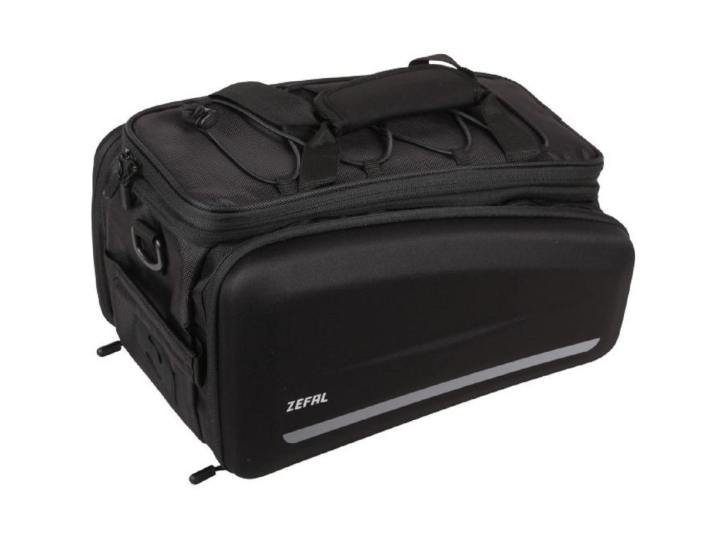 Taška na bicykel s ramenným popruhom a pláštenkou do dažďa. Jednoduchá, univerzálna montáž pomocou pásikov na suchý zips. Materiál - Polyuretán 600D