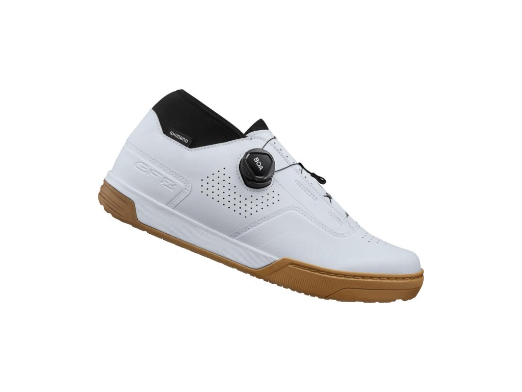 Zvládnite každý zjazd s novými tretrami GF800. Systém BOA® s kolieskom L6 s krytom, ktorý chráni proti náhodnému uvoľneniu. Nový zosilnený klenok podrážky zabraňuje ohnutiu klenby a zároveň zachováva laterálnu flexibilitu pre lepšiu kontrolu v drsnom a technickom teréne. Zvršok zo syntetickej kože rýchlo schne a chráni vás pred poveternostnými vplyvmi, zatiaľ čo prepracované zapínanie BOA zaisťuje optimálne prispôsobenie a bezpečné držanie chodidla. Gumená zmes SHIMANO ULTREAD GF a dezén optimalizovaný pre flat pedále. Optimalizovaná neoprénová manžeta obopína členok a zabraňuje vniknutiu nečistôt a úlomkov. Unikátna konštrukcia medzipodrážky TORBAL 2.0 umožňuje torzný pohyb pätovej časti, pričom si zachováva plný rozsah pohybu pre lepšie pohodlie jazdca, plynulosť a kontrolu na bicykli. Váha páru tretier je 792g vo veľkosti 43. Odporúčame odmerať chodidlo a objednať veľkosť podľa veľkostnej tabuľky - zväčša je potrebné objednať o číslo väčšiu veľkosť než štandardne nosíte.