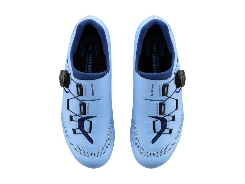 Vysokovýkonné dámske cestné cyklistické tretry za skvelú cenu so špičkovou pretekárskou technológiou. Priedušný a ľahký zvršok poskytuje celkové pohodlie a vynikajúce prispôsobenie, zatiaľ čo medzipodrážka vystužená karbónom dodáva tuhosť a stabilitu, ktorú by ste očakávali od špičkovej cyklistickej topánky. Systém BOA® s kolieskom L6C a systémom šnurovania vyvinutým spoločnosťou SHIMANO. Medzipodrážka z nylonu vystuženého karbónovými vláknami pre vynikajúci prenos sily. Integrovaná bezšvová medzipodrážka a konštrukcia zvršku poskytuje vynikajúce prispôsobenie a stabilitu. Špička a medzipodrážka sú vyrobené z 23 % (hmotnostne) recyklovaného materiálu. Kompaktný perforovaný zvršok zo syntetickej kože s novým systémom zapínania. Špeciálny dámsky tvar kopyta pre maximálne pohodlie. Kompatibilné so zarážkami SPD-SL. Hmotnosť od 508g (č.43). Odporúčame odmerať chodidlo a objednať veľkosť podľa veľkostnej tabuľky - zväčša je potrebné objednať o číslo väčšiu veľkosť než štandardne nosíte.