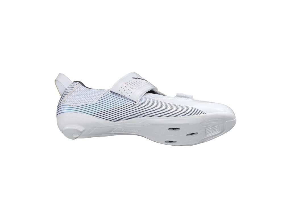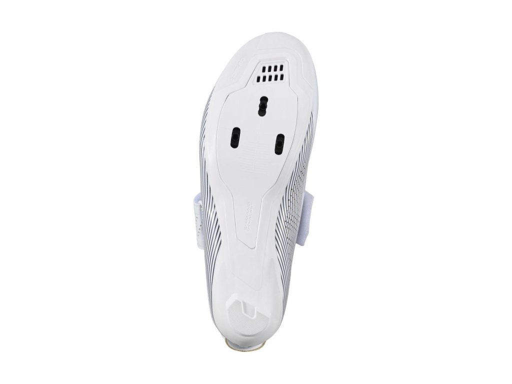 Dámske triatlonové tretry s pokrokovými technológiami. Integrovaná bezšvová medzipodrážka a konštrukcia zvršku prinášajú novú úroveň stability, fitu a výkonnosti. Nízka medzipodrážka stabilizuje nohu a maximalizuje prenos sily do pedálov. Zapínanie pomocou rýchlo uzatváracieho pásku T1 a extra širokej manžety umožňuje pohodlné a rýchle prezúvanie. Veľká asymetrická slučka na päte uľahčuje vsunutie prstu, takže pri prezúvaní je možné tretry rýchlo upevniť. 3D priedušná sieťovina zlepšuje prúdenie vzduchu cez tretru a urýchľuje jej schnutie. Ľahká podrážka vystužená sklenými vláknami zabezpečuje výborný záber pri akýchkoľvek podmienkach. Špeciálny dámsky tvar vnútra pre zvýšený komfort. SPD-SL. Hmotnosť: od 446g (č. 40). Odporúčame odmerať chodidlo a objednať veľkosť podľa veľkostnej tabuľky - zväčša je potrebné objednať o číslo väčšiu veľkosť než štandardne nosíte.