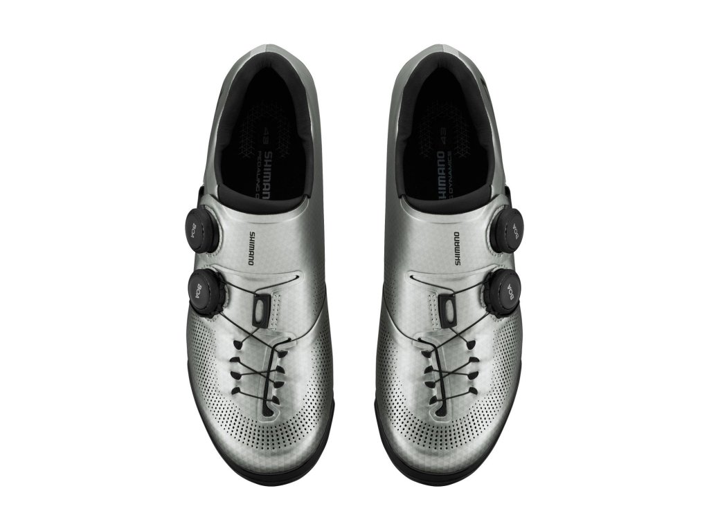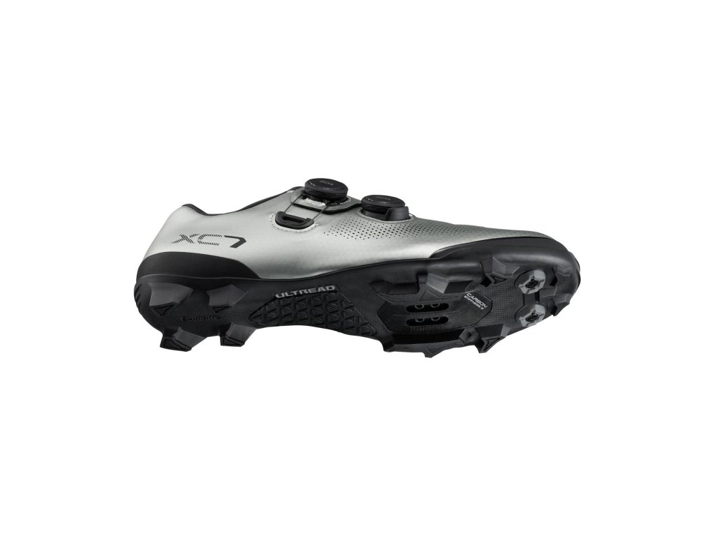 SH-XC703 sú pretekárske XC tretry, ktoré sú mimoriadne pohodlné, ľahké a navrhnuté pre maximálny výkon pri šliapaní za všetkých podmienok. Elegantné, ploché krížové šnurovanie zaisťuje elegantné uchytenie prednej časti chodidla. Systém BOA® s dvoma kompaktnými kolieskami L6Z pre presné prispôsobenie. Výnimočne ľahká a tuhá medzipodrážka vystužená karbónom pre optimálny prenos sily. Ľahká gumená podrážka SHIMANO ULTREAD XC poskytuje bezkonkurenčnú trakciu pri zdolávaní náročného terénu. Kompatibilné so zarážkami SPD. Hmotnosť od 644g (č.43). Odporúčame odmerať chodidlo a objednať veľkosť podľa veľkostnej tabuľky - zväčša je potrebné objednať o číslo väčšiu veľkosť než štandardne nosíte. Tretry sú dostupné aj v prevedení so širším kopytom - veľkosť je označená písmenom E.