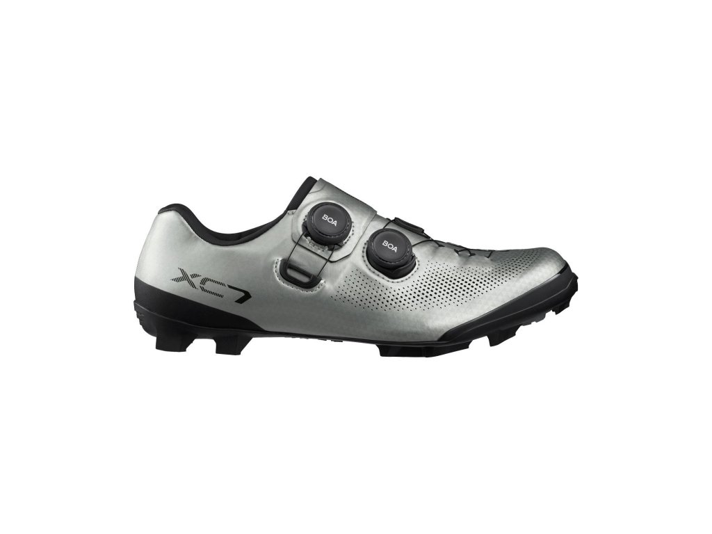 SH-XC703 sú pretekárske XC tretry, ktoré sú mimoriadne pohodlné, ľahké a navrhnuté pre maximálny výkon pri šliapaní za všetkých podmienok. Elegantné, ploché krížové šnurovanie zaisťuje elegantné uchytenie prednej časti chodidla. Systém BOA® s dvoma kompaktnými kolieskami L6Z pre presné prispôsobenie. Výnimočne ľahká a tuhá medzipodrážka vystužená karbónom pre optimálny prenos sily. Ľahká gumená podrážka SHIMANO ULTREAD XC poskytuje bezkonkurenčnú trakciu pri zdolávaní náročného terénu. Kompatibilné so zarážkami SPD. Hmotnosť od 644g (č.43). Odporúčame odmerať chodidlo a objednať veľkosť podľa veľkostnej tabuľky - zväčša je potrebné objednať o číslo väčšiu veľkosť než štandardne nosíte. Tretry sú dostupné aj v prevedení so širším kopytom - veľkosť je označená písmenom E.