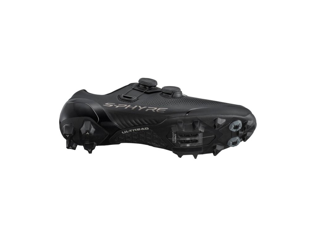 Tretry S-PHYRE XC903, navrhnuté pre XC a cyklokrosových pretekárov svetovej triedy, poskytujú vynikajúce celodenné pohodlie pri jazde a bezpečné upevnenie chodidla pre efektívnejší výkon pri šliapaní. Päta so stabilizátorom zabezpečuje optimálnu pozíciu nohy pre prudké zrýchlenie a kadenciu vo vysokom tempe. Duálny nízkoprofilovy BOA® Li2 systém upínania umožňuje precízne a jemné nastavenie upnutia nohy v tretre a krytka na spodnom koliesku ho chráni pre nárazmi. Ľahká gumená podrážka SHIMANO ULTREAD XC s vysoko technickým vzorom dezénu poskytuje výnimočnú priľnavosť. Vymeniteľné železné hroty umožňujú jazdcovi vybrať si medzi ultra-ľahkou výkonnosťou alebo dokonalou trakciou. Zvršok so špecifickými funkčnými zónami a vedecky optimalizovanými materiálmi maximalizuje fit a výkonnosť pedálovania. Nízka medzipodrážka pomáha stabilizovať nohu v tretre, maximalizuje prenos sily a efektívnosť. SPD. Hmotnosť od 586g (č.42). Odporúčame odmerať chodidlo a objednať veľkosť podľa veľkostnej tabuľky - zväčša je potrebné objednať o číslo väčšiu veľkosť než štandardne nosíte. Tieto tretry sú prevedení so širším kopytom.