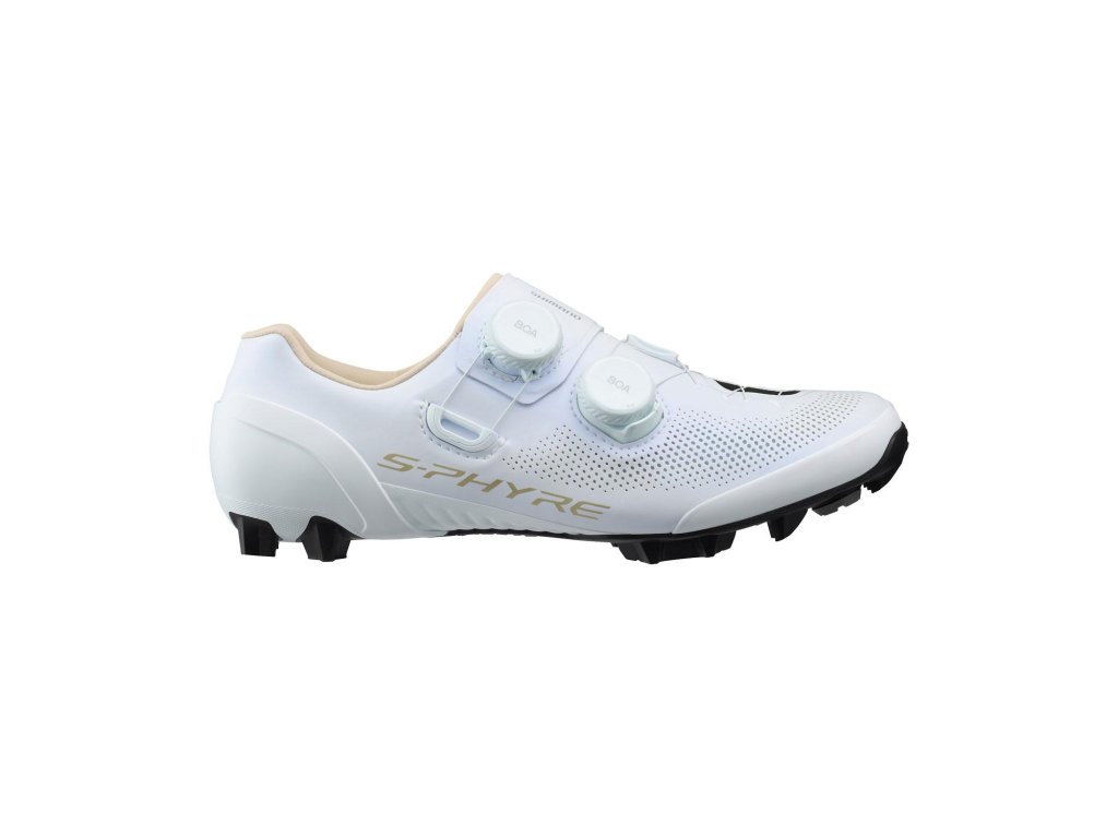Tretry S-PHYRE XC903, navrhnuté pre XC a cyklokrosových pretekárov svetovej triedy, poskytujú vynikajúce celodenné pohodlie pri jazde a bezpečné upevnenie chodidla pre efektívnejší výkon pri šliapaní. Päta so stabilizátorom zabezpečuje optimálnu pozíciu nohy pre prudké zrýchlenie a kadenciu vo vysokom tempe. Duálny nízkoprofilovy BOA® Li2 systém upínania umožňuje precízne a jemné nastavenie upnutia nohy v tretre a krytka na spodnom koliesku ho chráni pre nárazmi. Ľahká gumená podrážka SHIMANO ULTREAD XC s vysoko technickým vzorom dezénu poskytuje výnimočnú priľnavosť. Vymeniteľné železné hroty umožňujú jazdcovi vybrať si medzi ultra-ľahkou výkonnosťou alebo dokonalou trakciou. Zvršok so špecifickými funkčnými zónami a vedecky optimalizovanými materiálmi maximalizuje fit a výkonnosť pedálovania. Nízka medzipodrážka pomáha stabilizovať nohu v tretre, maximalizuje prenos sily a efektívnosť. Špeciálny dámsky tvar kopyta pre maximálne pohodlie. SPD. Hmotnosť od 586g (č.42). Odporúčame odmerať chodidlo a objednať veľkosť podľa veľkostnej tabuľky - zväčša je potrebné objednať o číslo väčšiu veľkosť než štandardne nosíte.