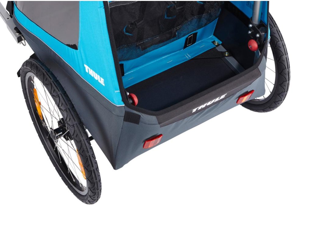 Thule Coaster XT je odolný, bezpečný a pohodlný detský vozík za bicykel, ktorý v cieli svojej cesty ľahko premeníte v praktický kočík. VLASTNOSTI: - S vozíkom sa dodáva cyklistický a kočíkový set. - Po odpojení od kolesa možno vozík ľahko prestaviť na vychádzkovú verziu. - Bezpečné upevnenie vozíka k bicyklu zaisťuje patentovaný záves ezHitch ™ spoločnosti Thule. - Predné koleso, ktoré sa používa pri prechádzkach, je možné uložiť priamo na vozíku. - Do vozíka sa pohodlne zmestia dve deti. - Nastaviteľné riadidlá HeightRight ™ rodičom ponúkajú maximálny komfort - Vozík je kompatibilný s radom doplnkov. - Vozík možno ľahko zložiť, a tak sa dobre skladuje aj preváža. - Vozík ponúka tiež veľa úložného priestoru. - Zodpovedá medzinárodným bezpečnostným normám.